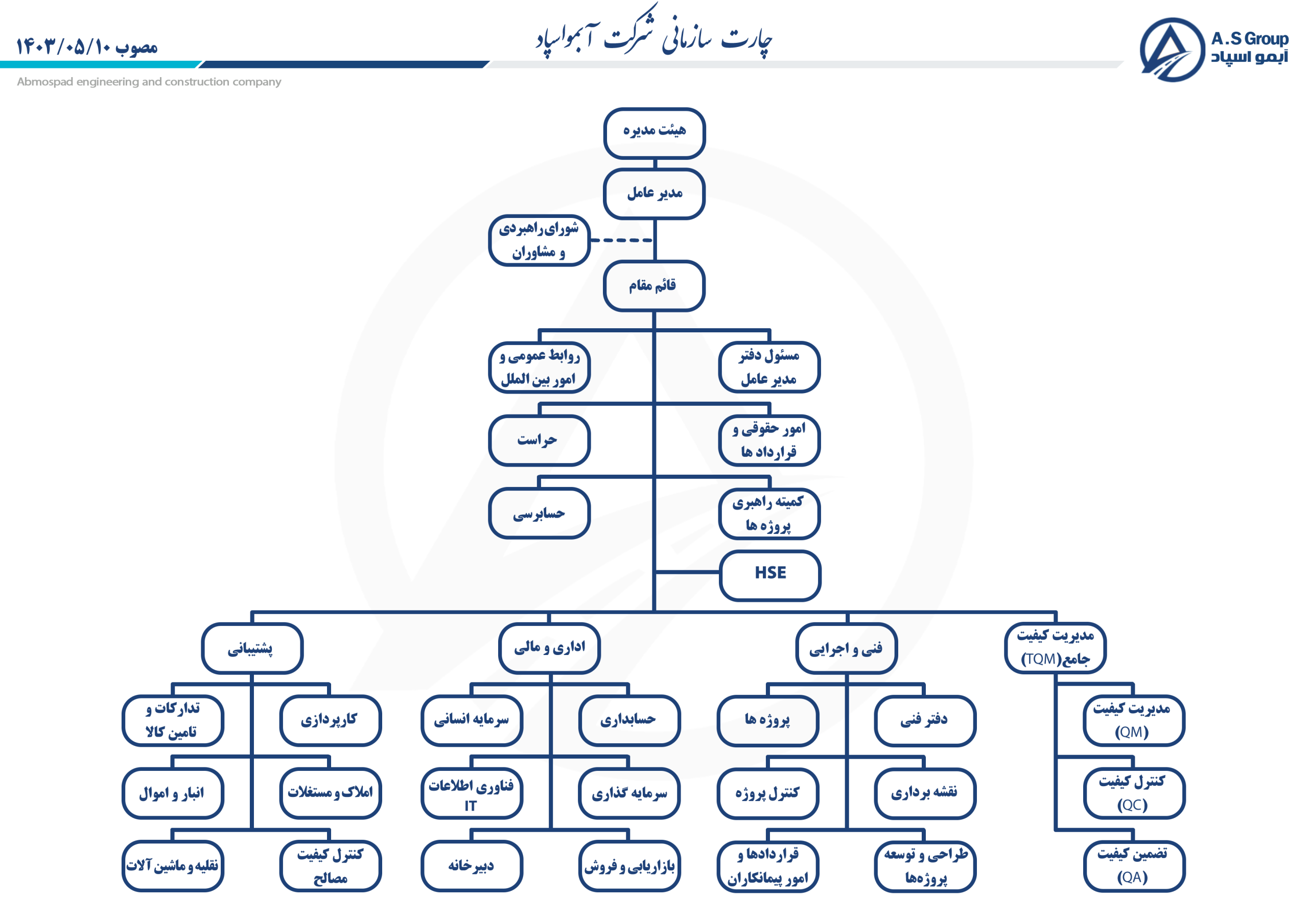 ما در شرکت آبمو اسپاد در این اندیشه هستیم تا با یاری خداوند متعال و با بهره گیری از نیروی انسانی متخصص، پویا و نخبه به در مسیر سازندگی و عمران در تراز جهانی عمل نموده و با ارائه خدمات شایسته و با کیفیت، خدمتی ماندگار در ایران برجای گذاریم.